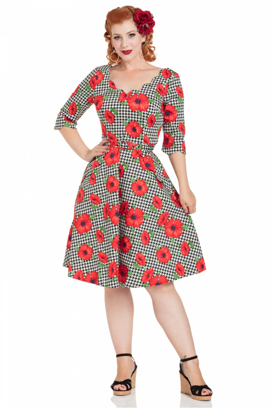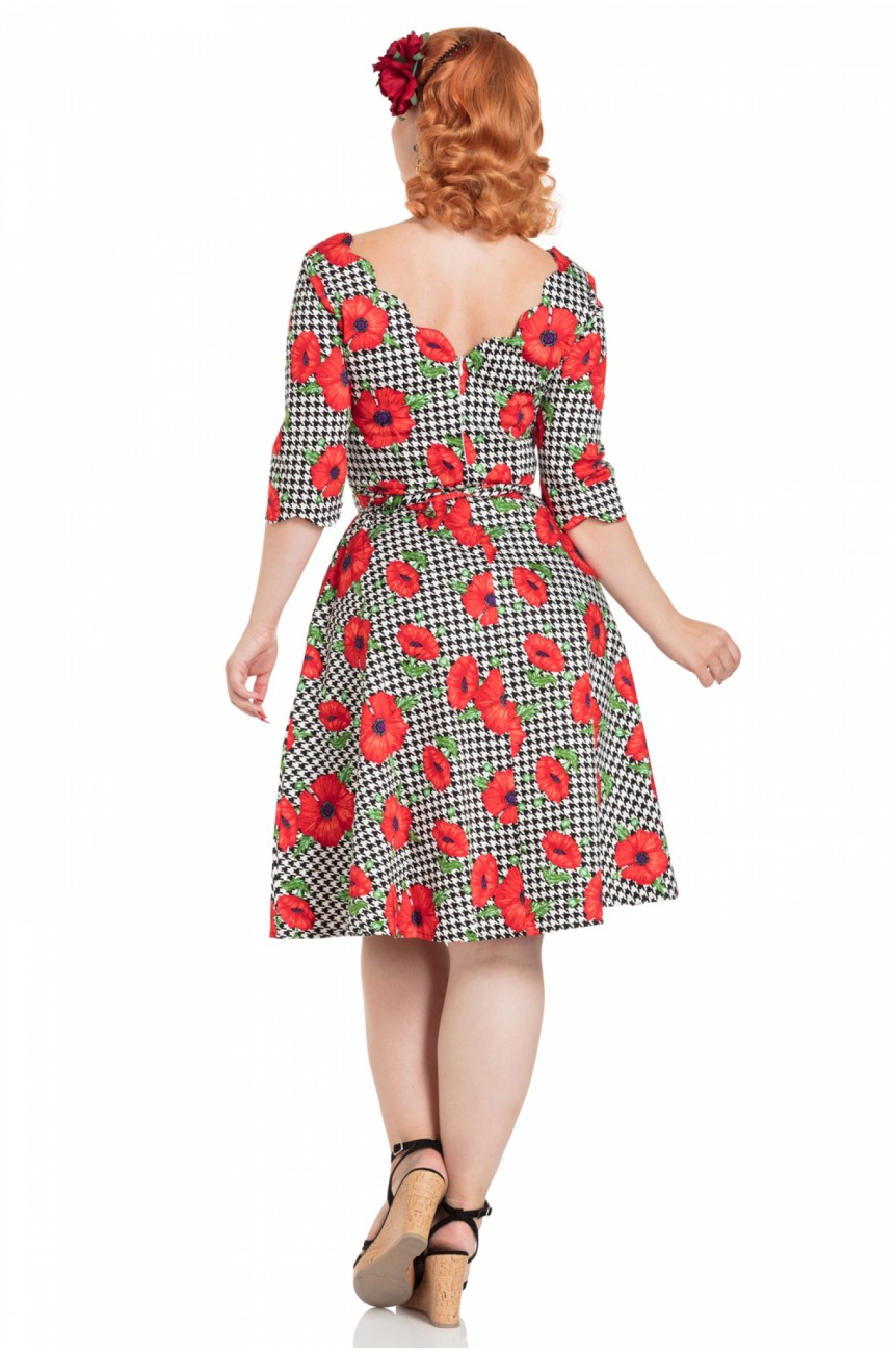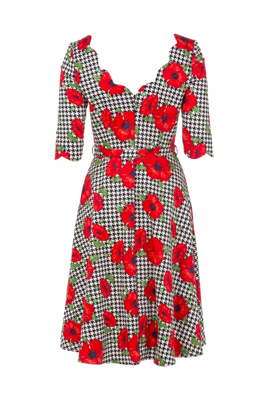 Robe vintage imprimé pied de poule et fleurs de pavot.